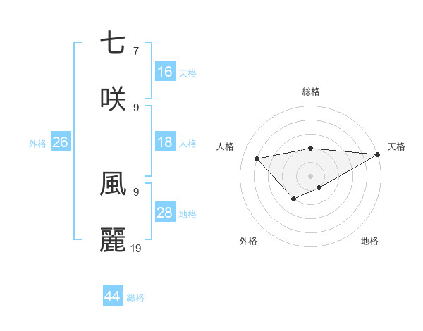 七咲 風麗さんを姓名の画数から五運を鑑定