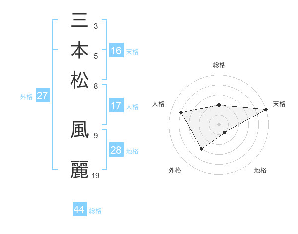 三本松 風麗さんの天格は16画の5点!