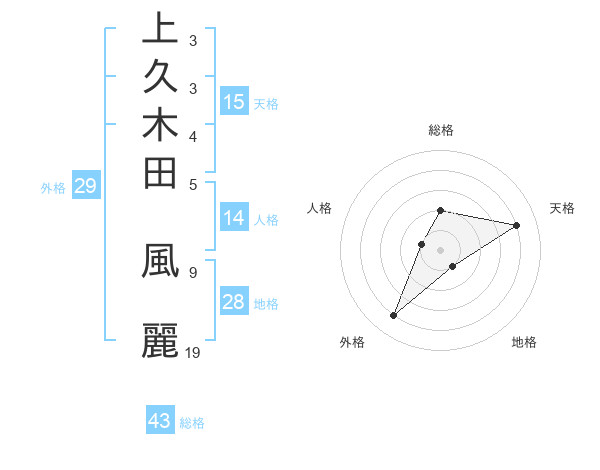 上久木田 風麗さんの外格は29画の4点
