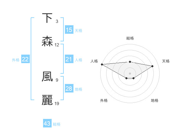 下森 風麗さんの外格は22画の1点!