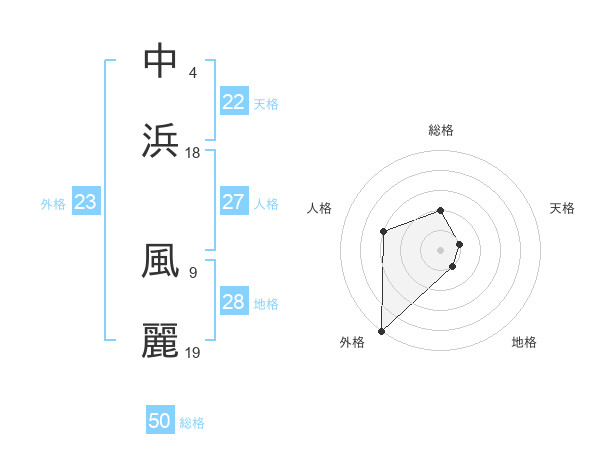 中浜 風麗さんの外格は23画の5点!