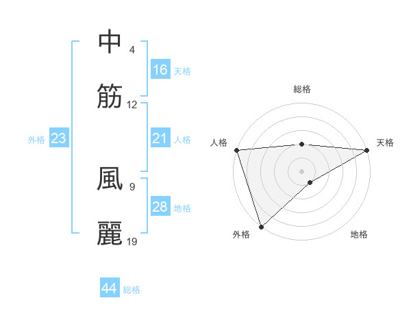 中筋 風麗さんの天格は16画の5点!