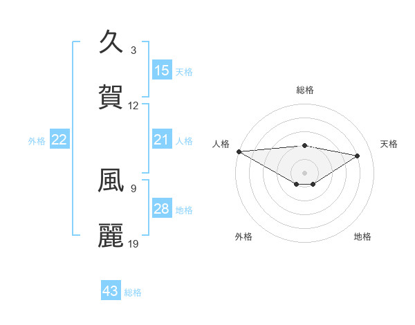 久賀 風麗さんを姓名の画数から五運を鑑定