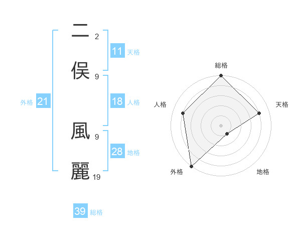 二俣 風麗さんを姓名の画数から五運を鑑定
