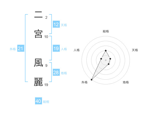 二宮 風麗さんを姓名の画数から五運を鑑定