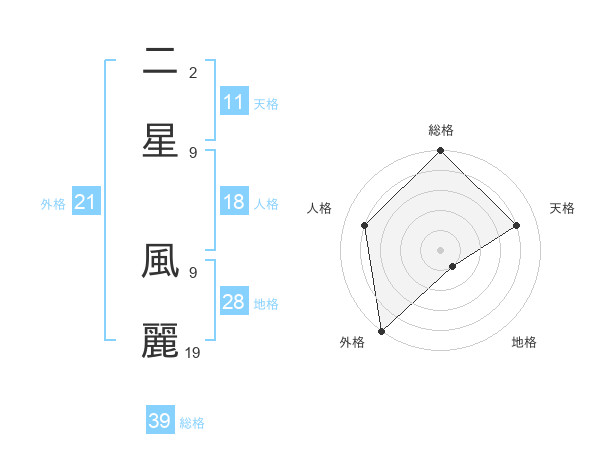 二星 風麗さんの総格は39画の5点!