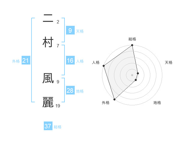 二村 風麗さんの総格は37画の5点!