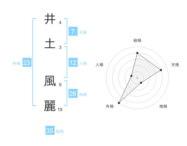 井土 風麗さんの総格は35画の4点!