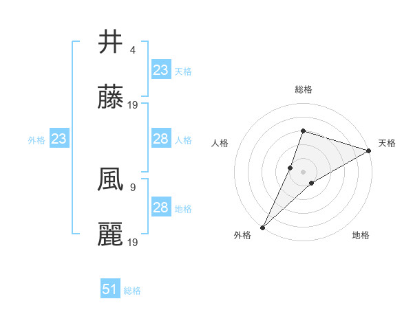 井藤 風麗さんの天格は23画の5点!