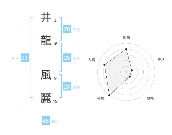 井龍 風麗さんを姓名の画数から五運を鑑定