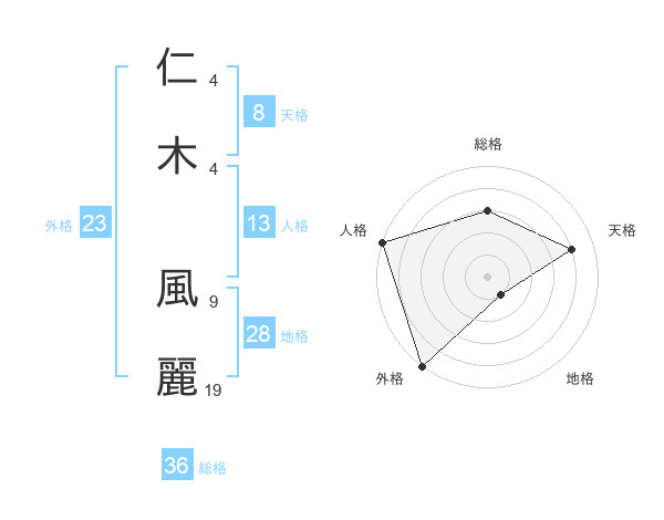 仁木 風麗さんを姓名の画数から五運を鑑定