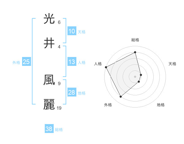 光井 風麗さんの総格は38画の4点!