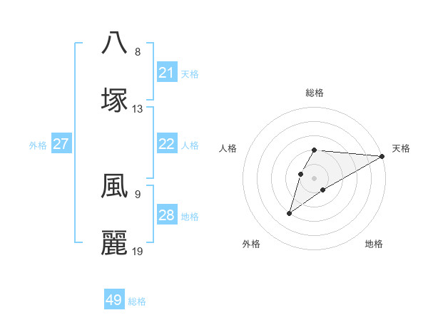 八塚 風麗さんの総格は49画の2点!