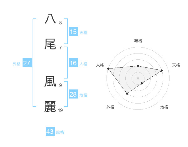 八尾 風麗さんを姓名の画数から五運を鑑定