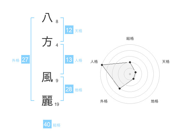 八方 風麗さんの外格は27画の3点!