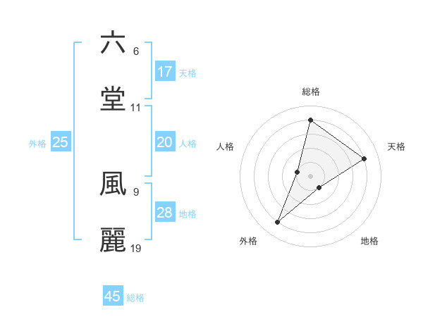 六堂 風麗さんの総格は45画の4点!