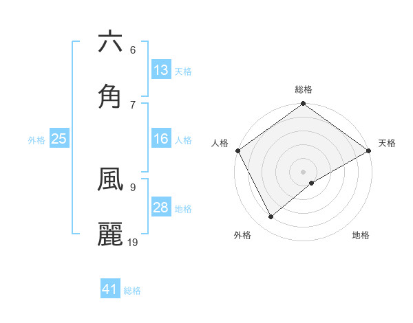 六角 風麗さんの外格は25画の4点!