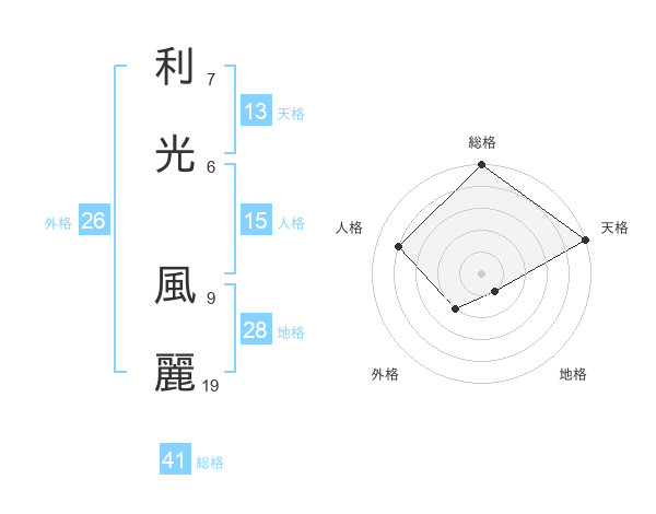 利光 風麗さんの天格は13画の5点!
