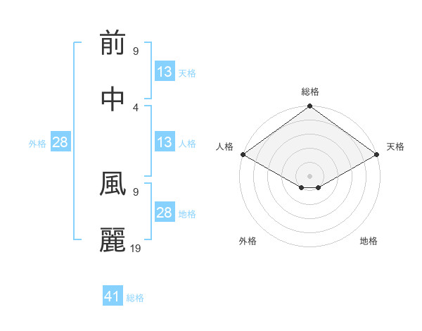 前中 風麗さんの天格は13画の5点!