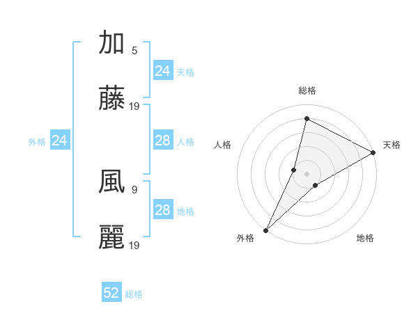 加藤 風麗さんの天格は24画の5点!