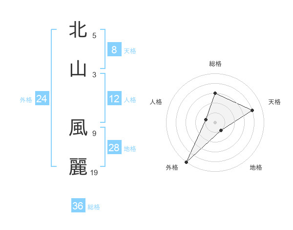北山 風麗さんの天格は8画の4点!