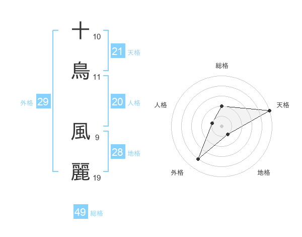 十鳥 風麗さんを姓名の画数から五運を鑑定