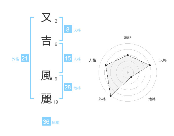 又吉 風麗さんの天格は8画の4点!