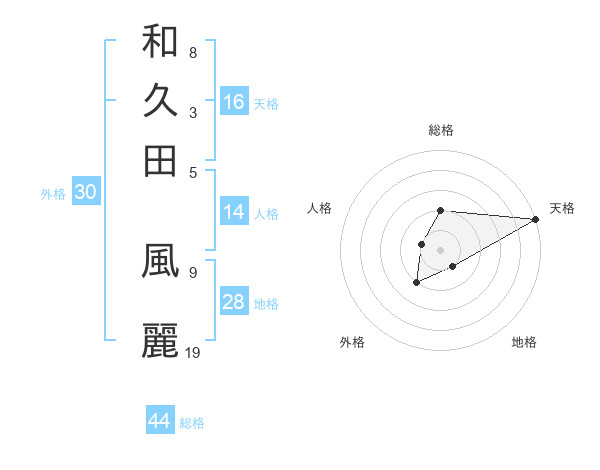 和久田 風麗さんを姓名の画数から五運を鑑定