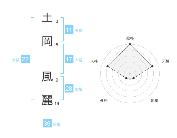 土岡 風麗さんの総格は39画の5点!