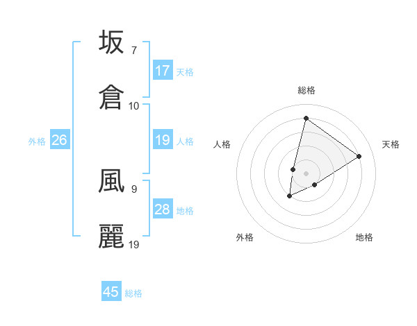坂倉 風麗さんの総格は45画の4点!