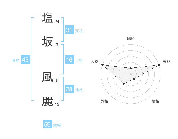 塩坂 風麗さんの総格は59画の1点!