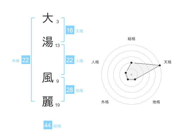 大湯 風麗さんを姓名の画数から五運を鑑定
