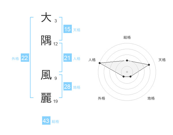 大隅 風麗さんの外格は22画の1点!