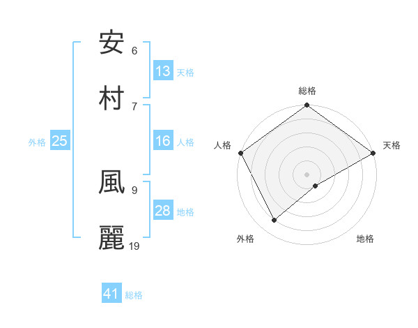 安村 風麗さんの外格は25画の4点!