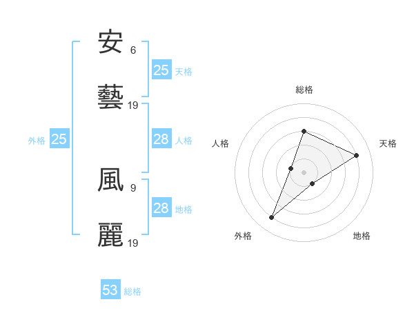 安藝 風麗さんを姓名の画数から五運を鑑定