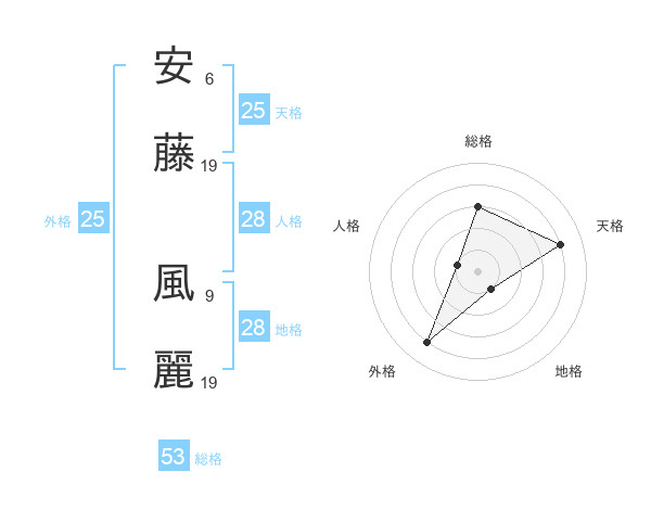安藤 風麗さんを姓名の画数から五運を鑑定