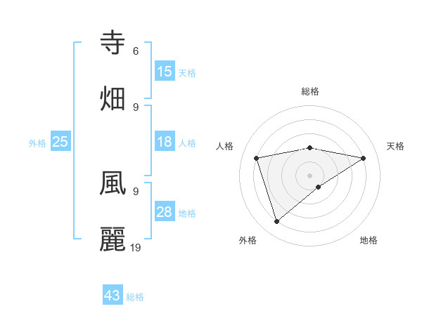 寺畑 風麗さんの総格は43画の2点!