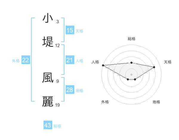 小堤 風麗さんを姓名の画数から五運を鑑定