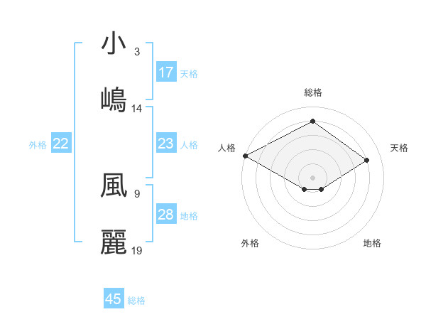 小嶋 風麗さんの総格は45画の4点!