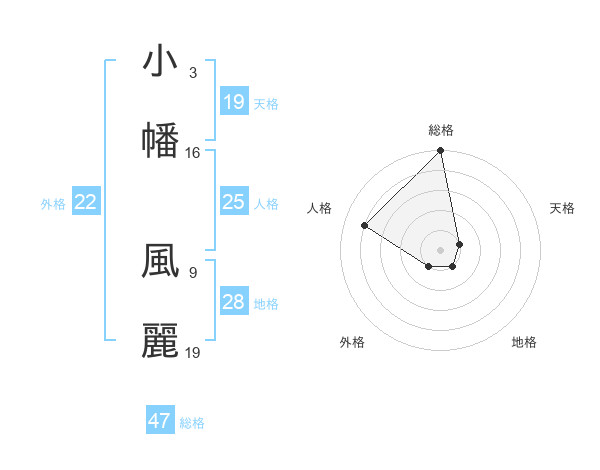 小幡 風麗さんの総格は47画の5点!