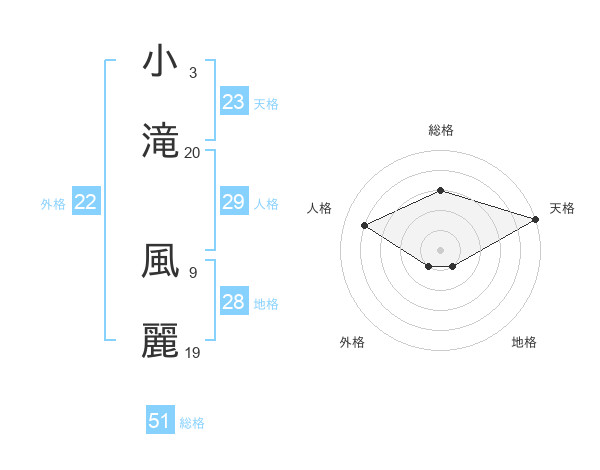 小滝 風麗さんの総格は51画の3点!