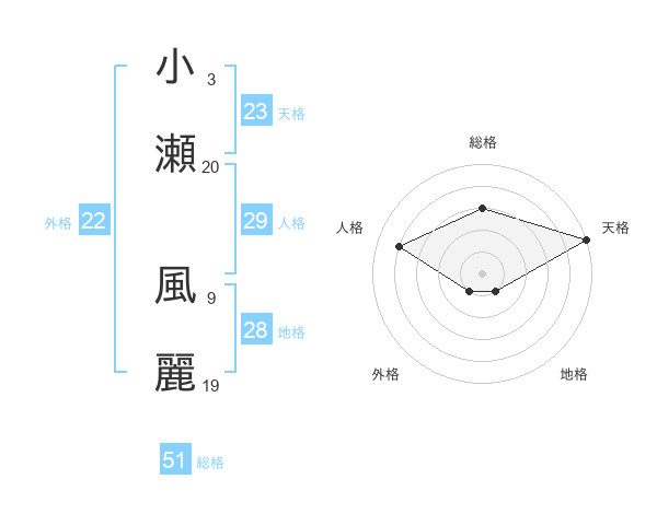 小瀬 風麗さんの天格は23画の5点!