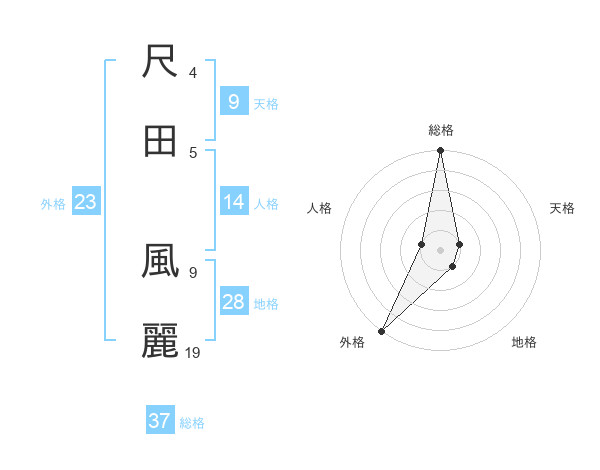尺田 風麗さんの総格は37画の5点!