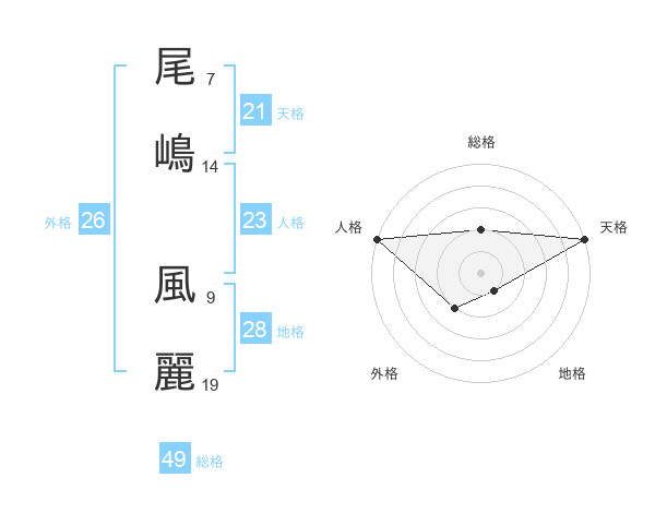 尾嶋 風麗さんの総格は49画の2点!
