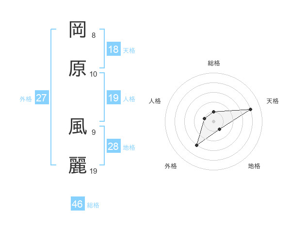 岡原 風麗さんを姓名の画数から五運を鑑定