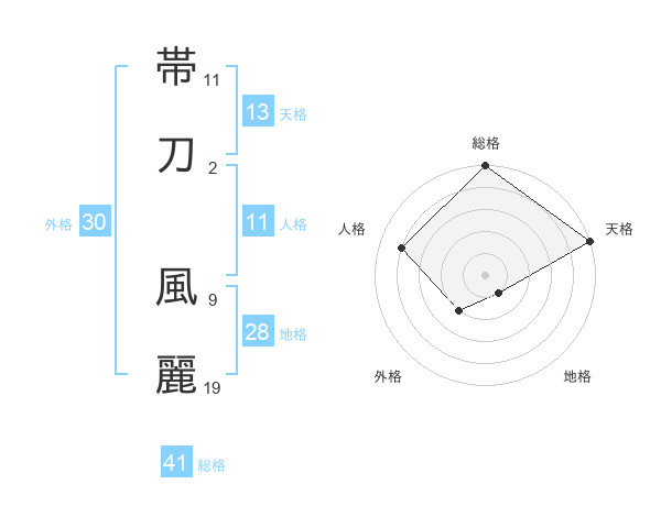 帯刀 風麗さんの総格は41画の5点!