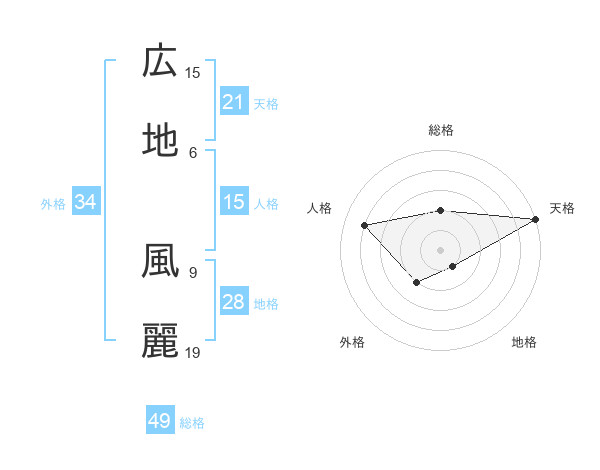 広地 風麗さんの天格は21画の5点!