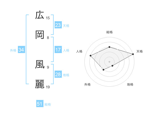 広岡 風麗さんの総格は51画の3点!