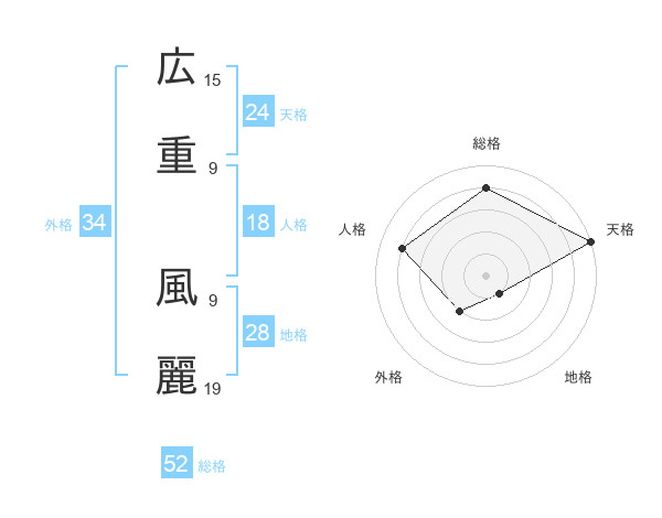 広重 風麗さんの総格は52画の4点!