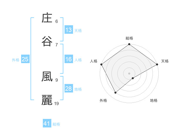 庄谷 風麗さんの総格は41画の5点!